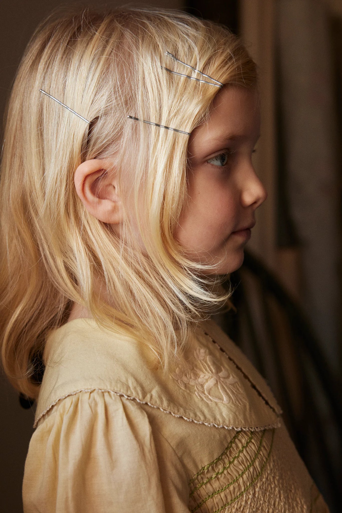 今シーズン新登場のCarey ドレスは、柔らかく軽やかなコットンカンブリックで仕立てられ、スカートにはオーガンジーの裏地をあしらい、甘くヴィンテージ感のあるシルエットに仕上げました。袖はふんわりとしたパフスリーブでカフスにはスモッキング、胸元にもスモッキングを施しています。襟・カフス・裾には手仕事の繊細な刺繍があしらわれ、特別な日の装いにぴったりです。